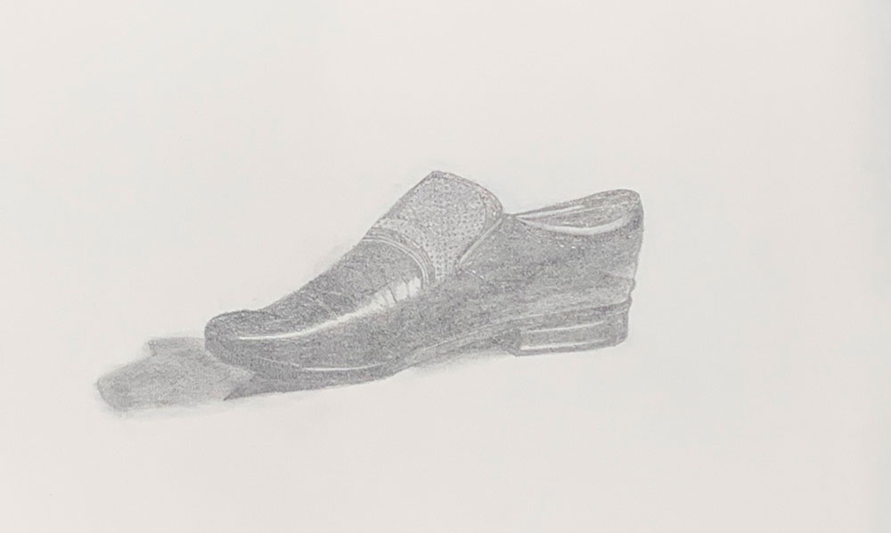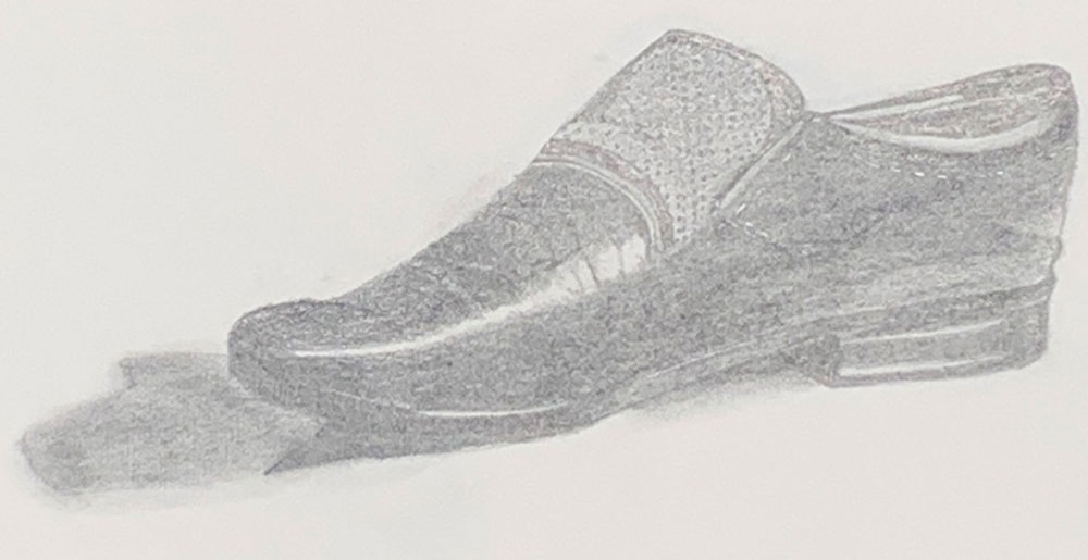 An attempt at pencil sketching, I tried to make this shoe look as real as possible with giving a shine, a leather effect and shadows where required.