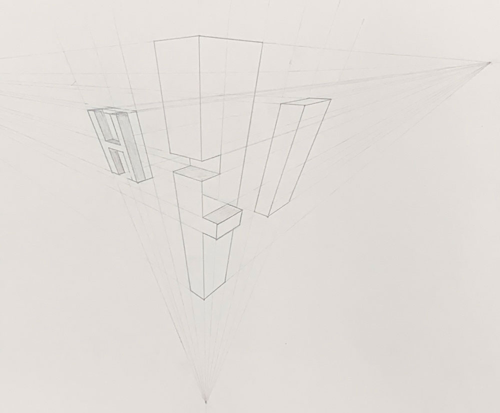 These are snippets from my sketchbook that show how I learnt the entire concept of three point perspective. Three point perspective brings height to the object along with the width and length and I usually observe it being used while making buildings.